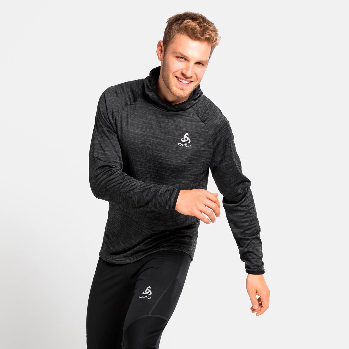 Odlo - MID LAYER HOODY RUN EASY WARM BLACK MELANGE