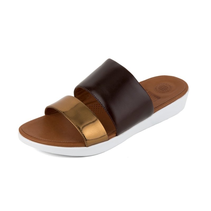 Fitflop - DELTA TM SLIDE SANDALS ESPRESSO/BRONZE MIRROR -30%