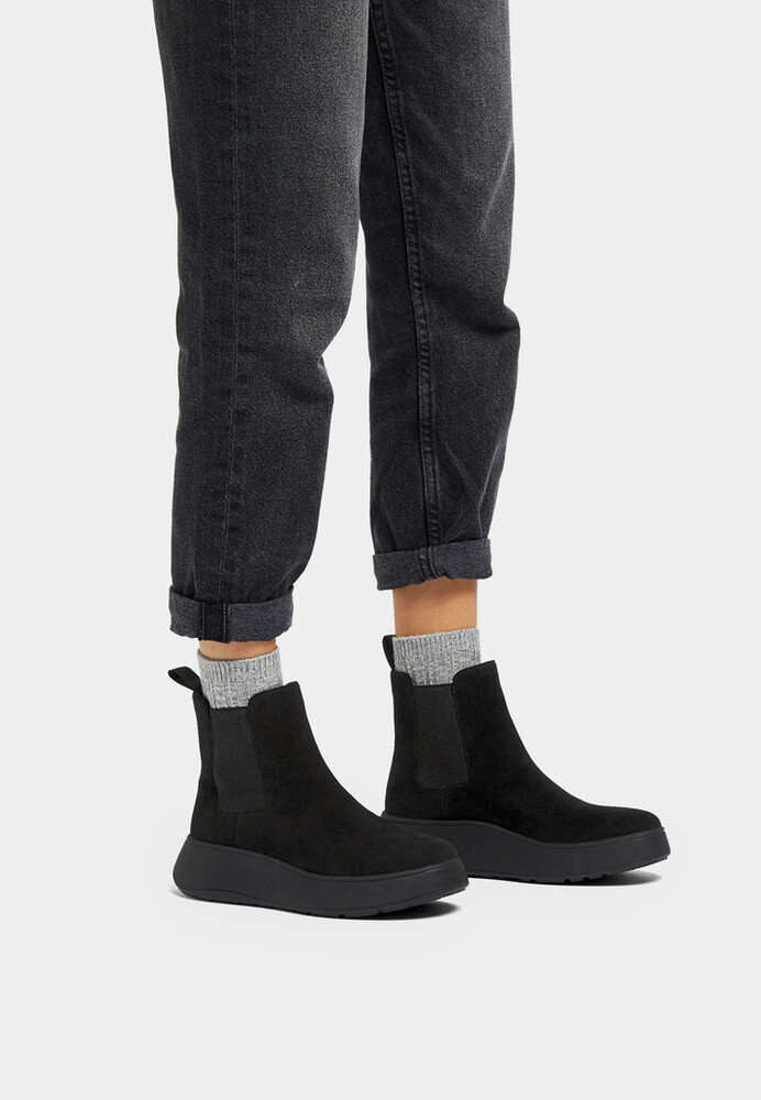 Fitflop - F-MODE SUEDE FLATFORM CHELSEA BOOTS ALL BLACK