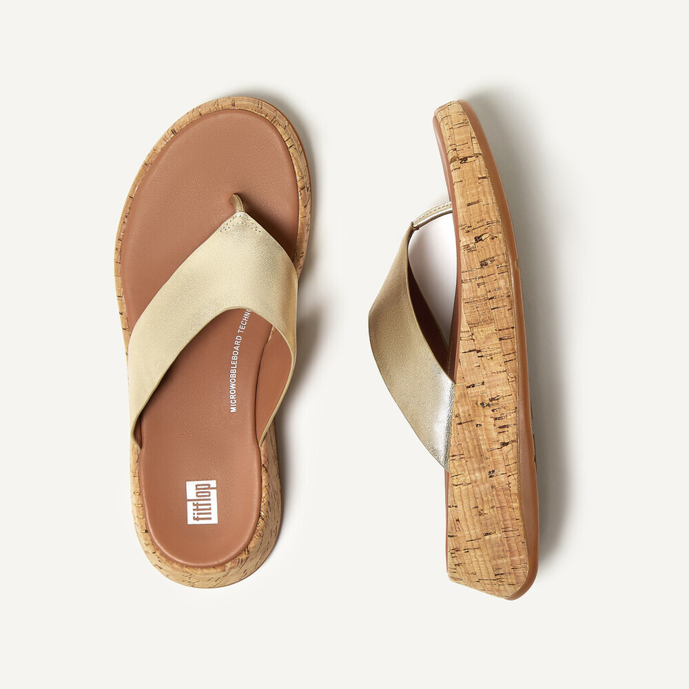 Fitflop - F-MODE LEATHER/CORK FLATFORM TOE-POST SANDALS Platino - DROP 10